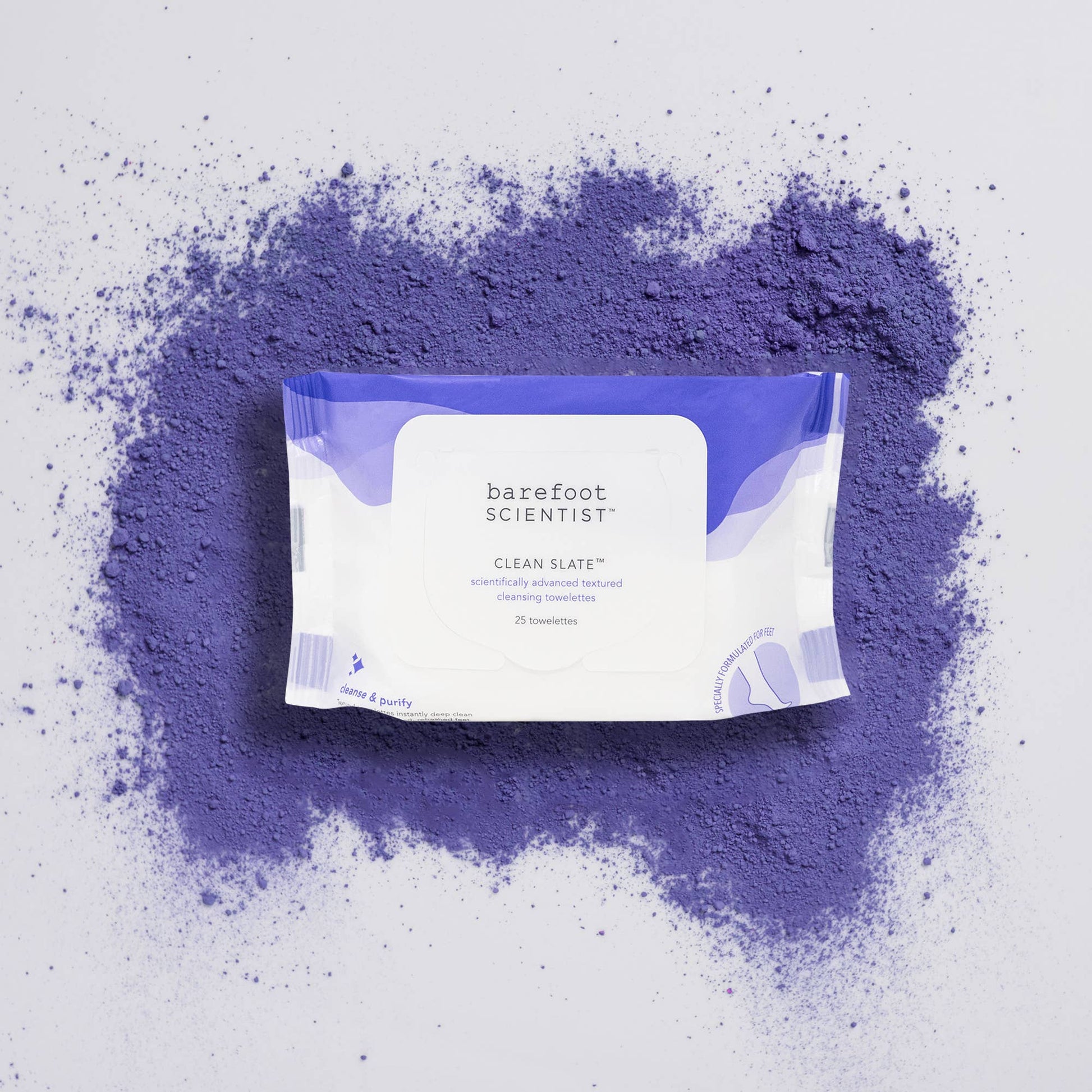Designed specifically for feet, Clean Slate™ wipes are extra large, ultra durable and feature micro dot technology to deep clean into the microgrooves on the soles of your feet while also gently moisturizing your skin.