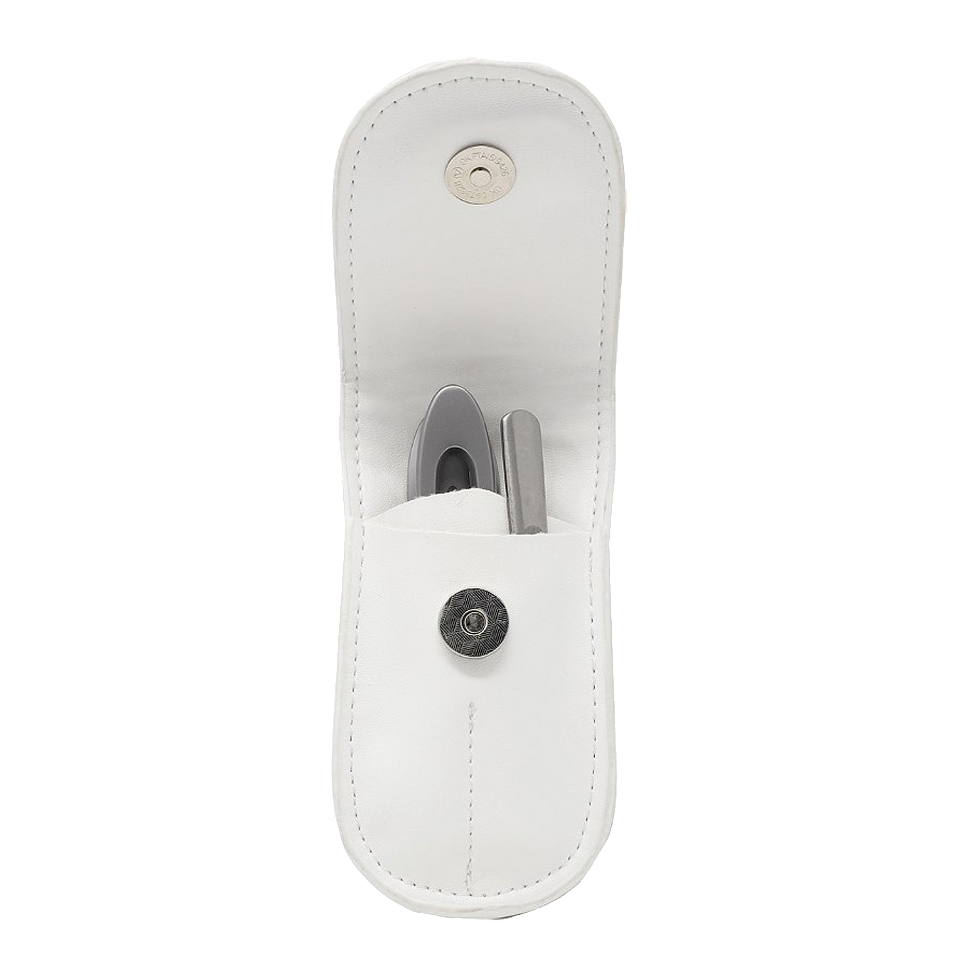Strong stainless-steel blades, sharp honed edges and a deep jaw allow for perfectly precise clips (even through thick nails), while a wider lever creates a comfortable, no-slip grip. The accompanying pointed steel file is specially shaped to help clean underneath nail edges and to safely push up cuticles.