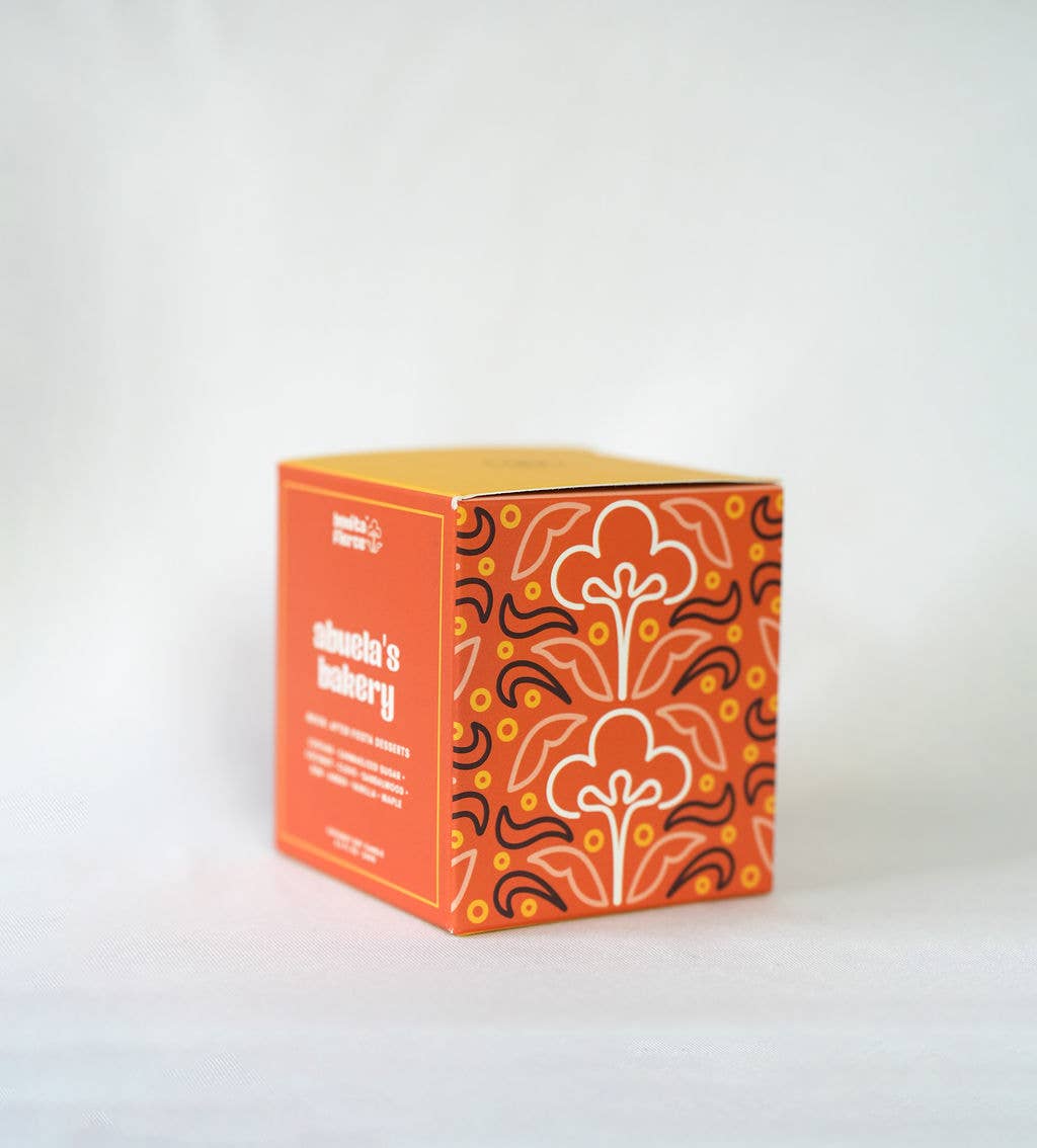 Bring yourself back to childhood and cozy yourself up in some blankets while the scent of abuela’s kitchen lulls you to sleep. The sweet scent of saffron, coconut and caramelized sugar reminds you of the fiesta desserts and playing dominoes con tu familia. The air fills with the clove, sandalwood, custard and rum. End your visit with some galletas by the fireplace as this candle leaves you with notes of amber, smoke, vanilla and maple. Mood: After Fiesta Desserts Notes: Saffron, Caramelized Sugar, Coconut, Clove, Incense, Sandalwood, Custard, Rum, Amber, Patchouli, Smoke, Vanilla, Maple, Benzoin
