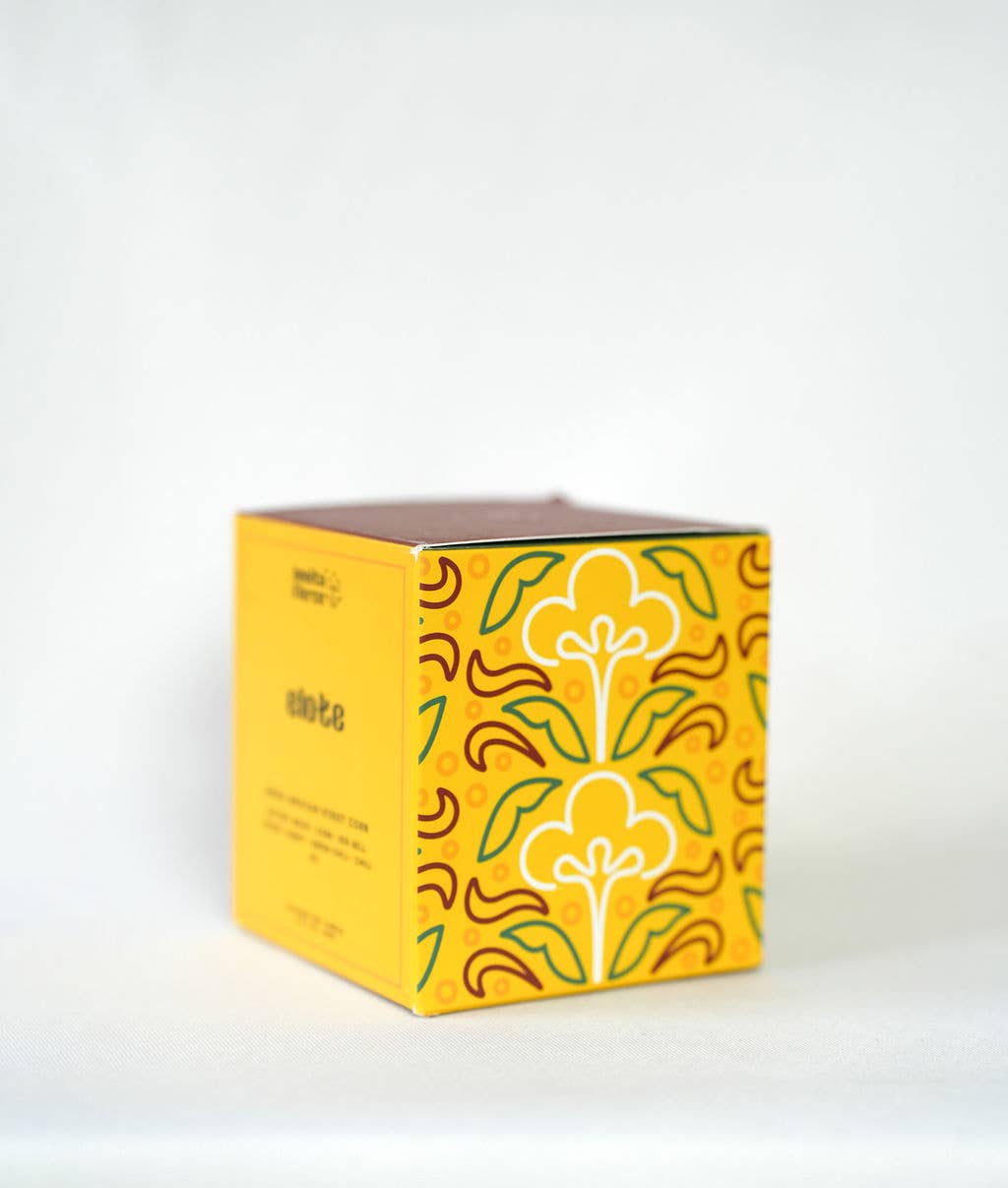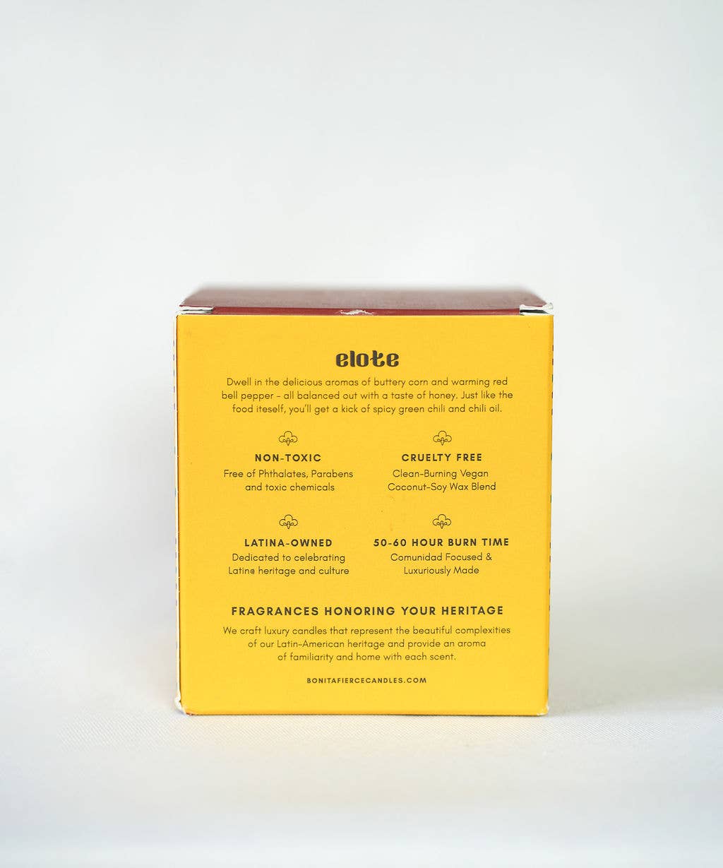 This is for the ones who are rushing out of the house–bata de casa and miss-matched chanclas on–to make sure they don’t miss el elotero. You know who you are! This mouthwatering candle is the home fragrance embodiment of the elotes you love–picoso, sabroso and oh-so-sweet. Light this candle to dwell in the delicious aromas of buttery corn and warming red bell pepper–all balanced out with a taste of honey. And, just like the food itself, you’ll get that can’t-stop kick of spicy green chili and chili oil (del que pica) that keeps you wanting more. Luckily, unlike a cup of elotes, this candle is gonna last longer than five minutes.