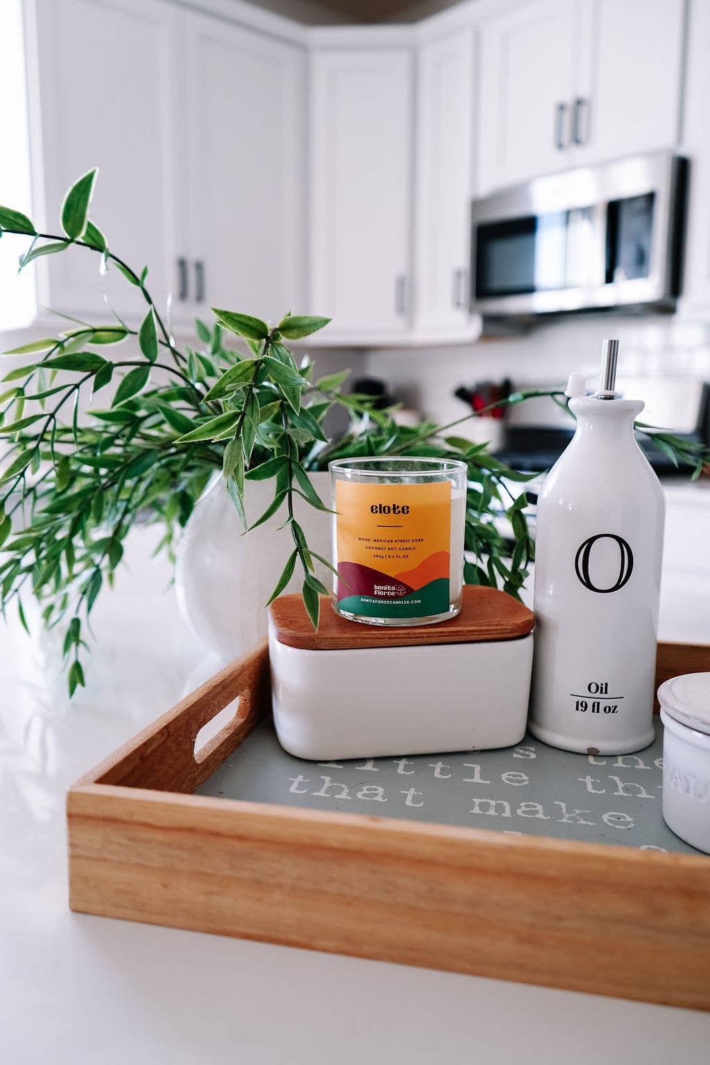 Mood: Mexican Street Corn Candle Notes: Buttery Bread, Corn, Red Bell Pepper, Honey, Green Chili, Chili Oil