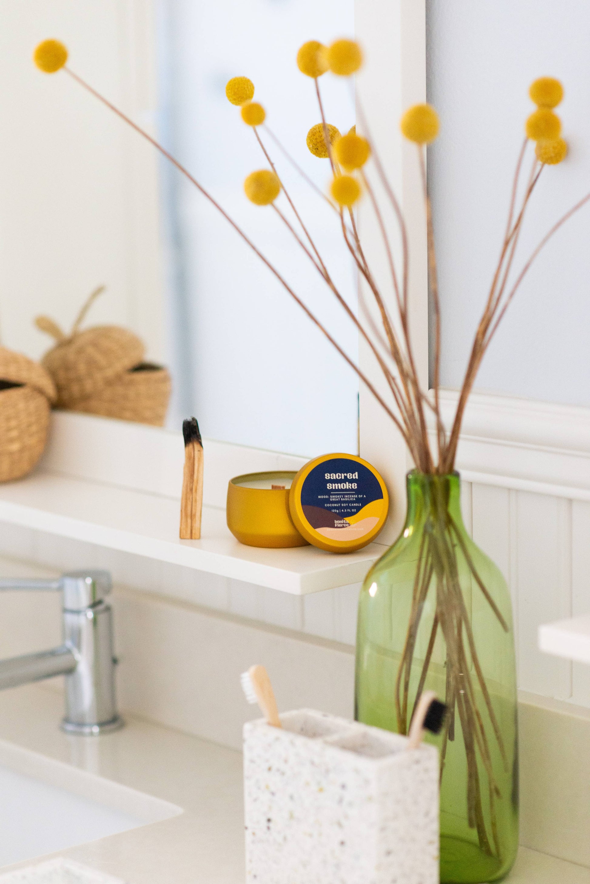 Our coconut soy wax candles are gluten-free, paraben-free, phthalate free with an FSC-certified wooden wick and a plantable seed paper dust cover. We hand-pour in micro-batches in New York and are Latina owned.