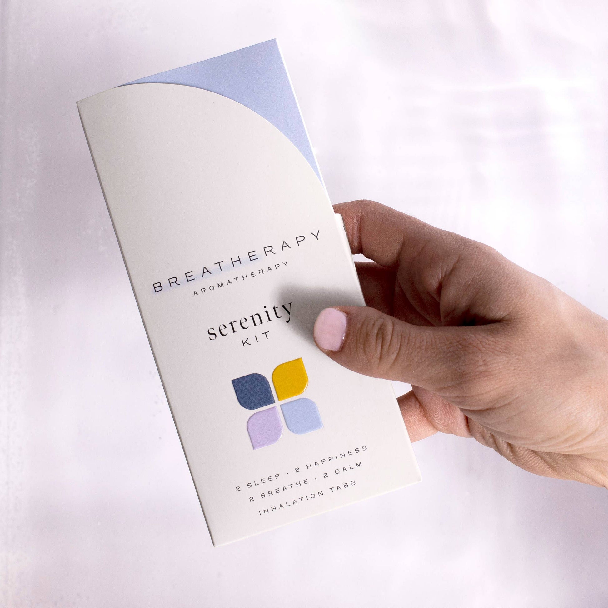2 sleep 2 happiness 2 breathe 2 calm—The Breatherapy Serenity Kit offers aromatherapy patches for comfort when the goal is to reach a level of anti-stress and anti-anxiety. Two patches each of Sleep, Happiness, Breathe and Calm tabs allow you the opportunity to experience the fullness of the Serenity Kit with pure, essential oils. Inhaling and exhaling Breatherapy tabs can bring you the serenity you seek.
