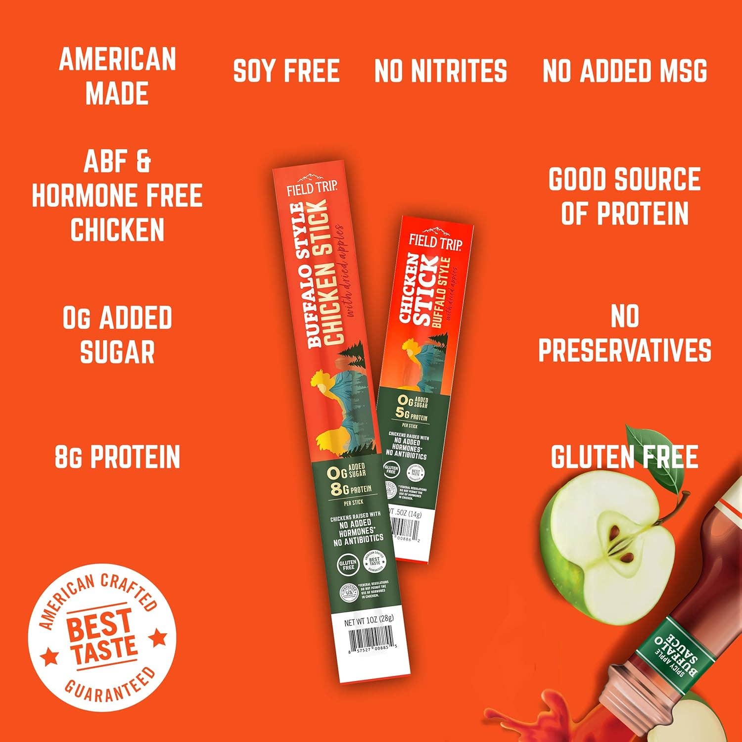All Natural: Field Trip Chicken Sticks are gluten free snacks created without dairy, soy, corn syrup, artificial flavors, preservatives, or added MSG, nitrate, and sugar; made in the USA.
