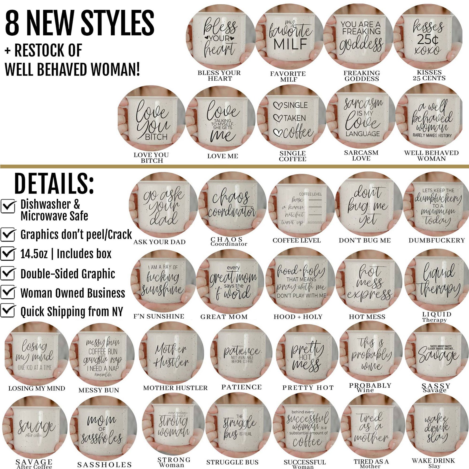 We also restocked an old favorite "well-behaved women" but remember: per usual they are limited. Only 100(ish) of each style being made! A few with only 80!