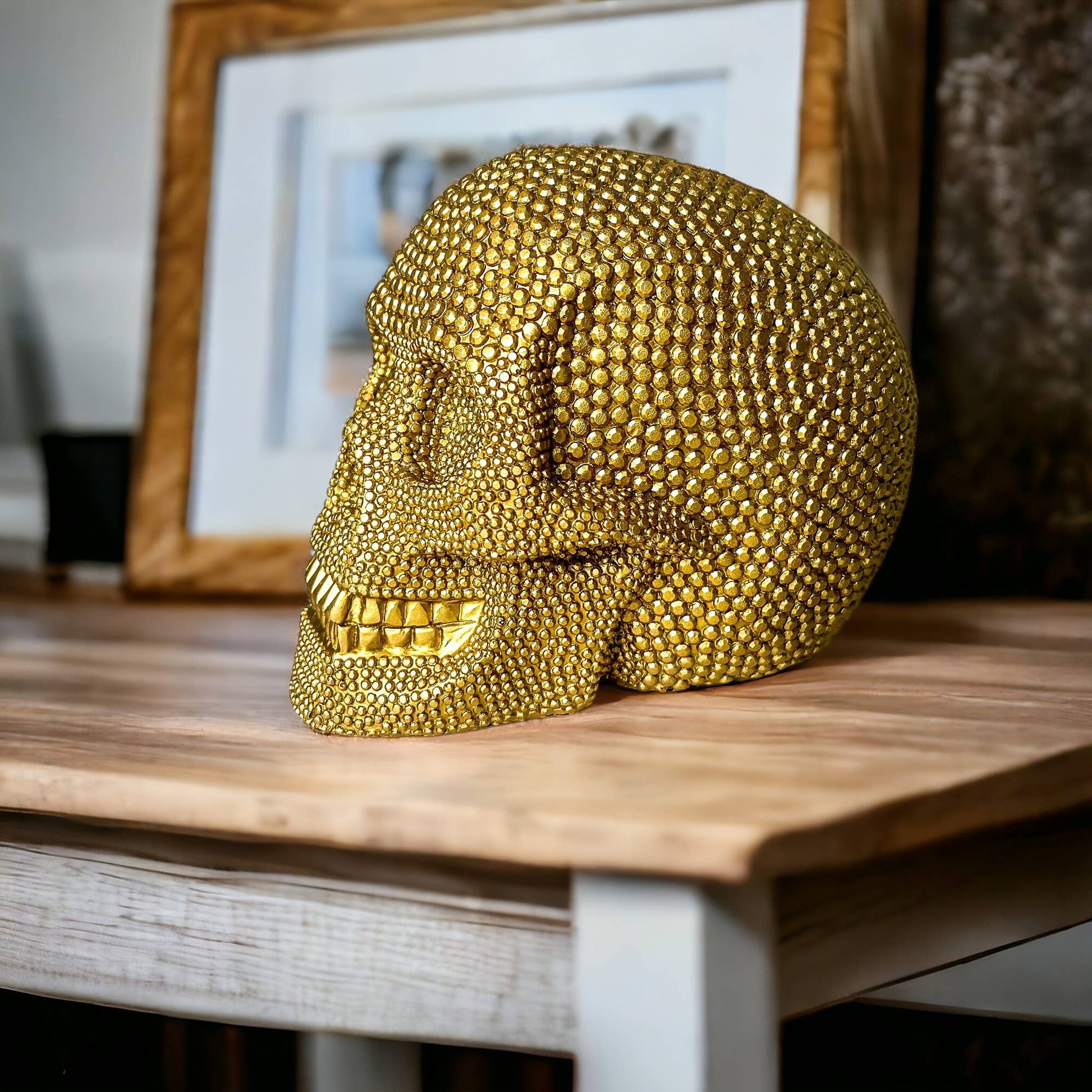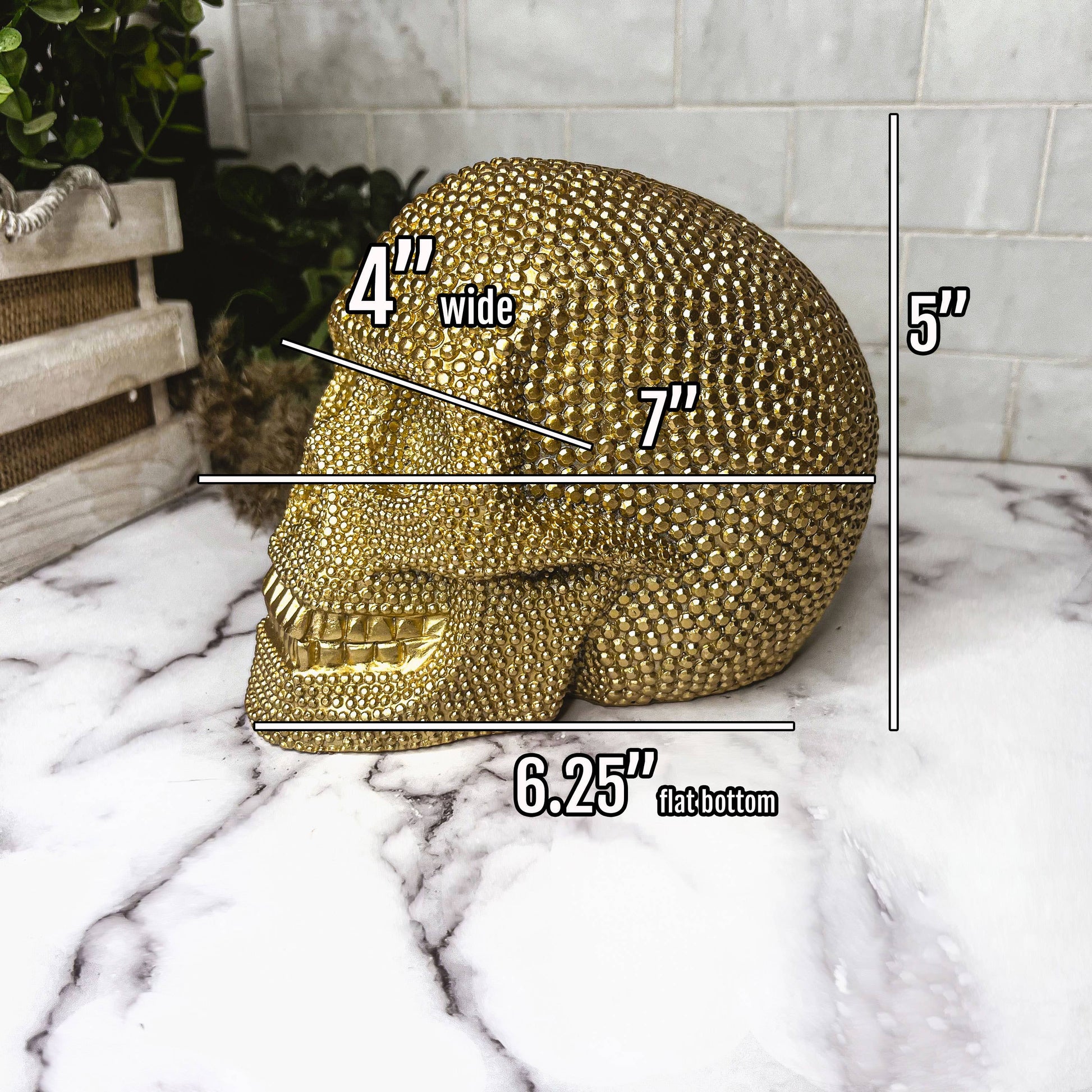 Whether it's serving as a regal bookend or stealing the spotlight on your shop side table, this golden cranium screams luxury with a touch of 'who knew skulls could be so fancy?' It's a timeless treasure fit for any season, because why limit gold to just one time of year?
