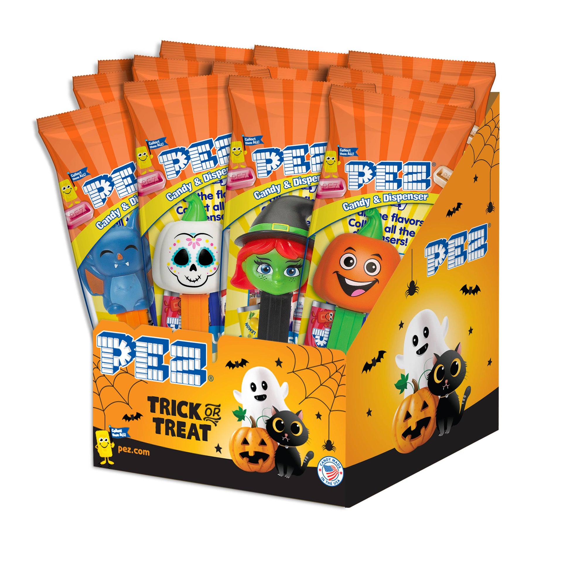 Each dispenser comes with PEZ candy refills (because obviously), and the individually wrapped poly bags make them perfect for trick-or-treat giveaways, party favors, or to haunt your store shelves with nostalgic charm.