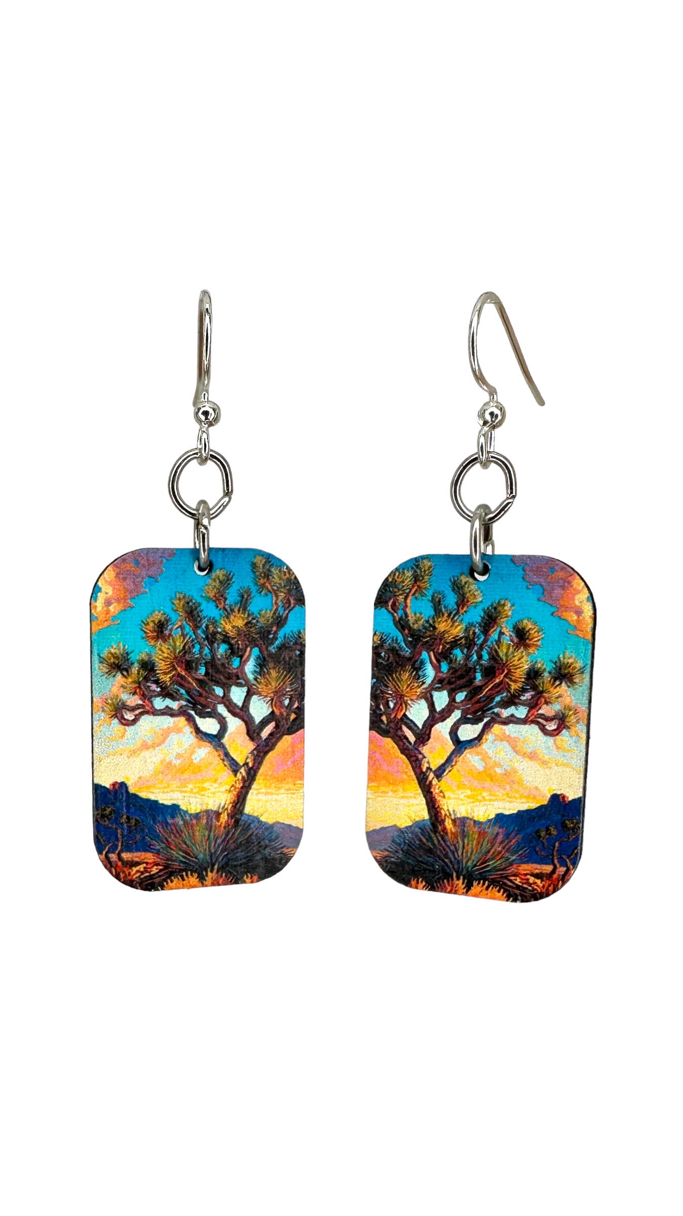 Embossed Earrings - The Joshua Tree is raised on top of the wood and background image, giving it a subtle 3D look, textured touch, and an overall dynamic look