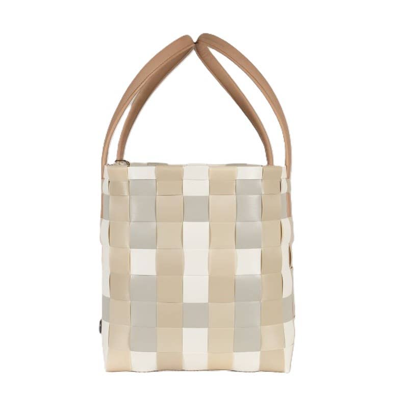 Color Block Recycled Handwoven Tote Bag - Ecru White Mix