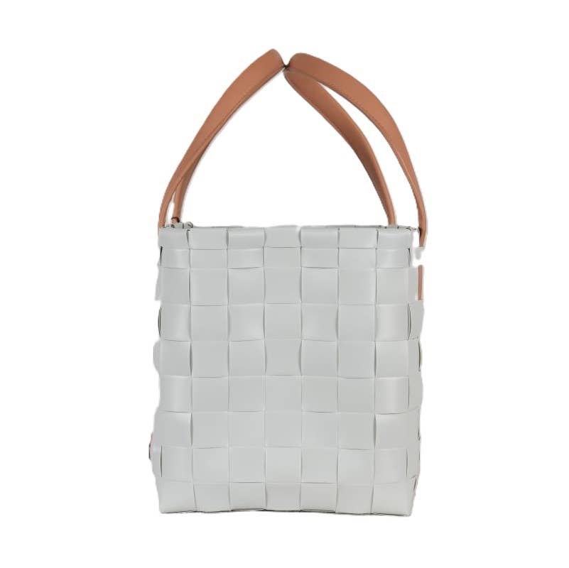 Color Block Recycled Handwoven Tote Bag - Misty Gray