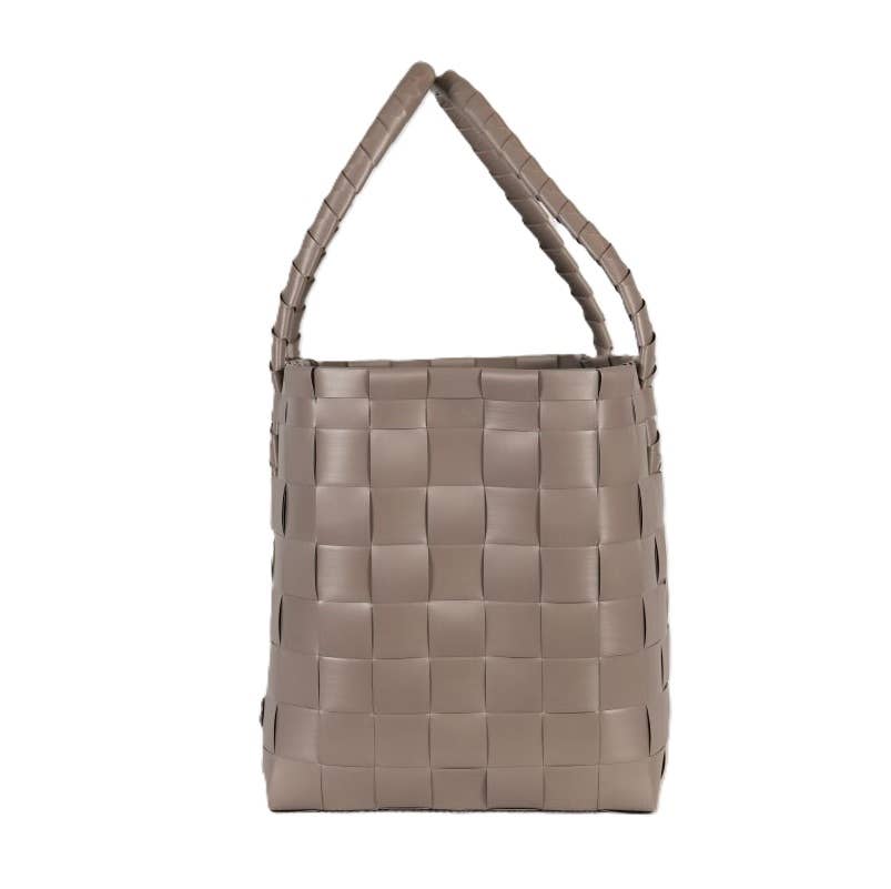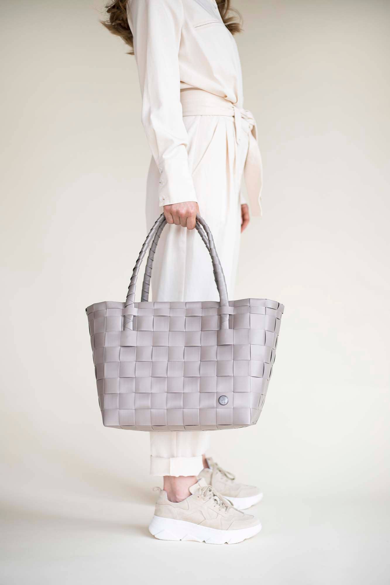 Designed in Europe, made of recycled plastic, handwoven by gifted artisans, lightweight and elegant, cleans easily with soap and water, stand up design, easy to load and unload, multipurpose totes for every occasion.