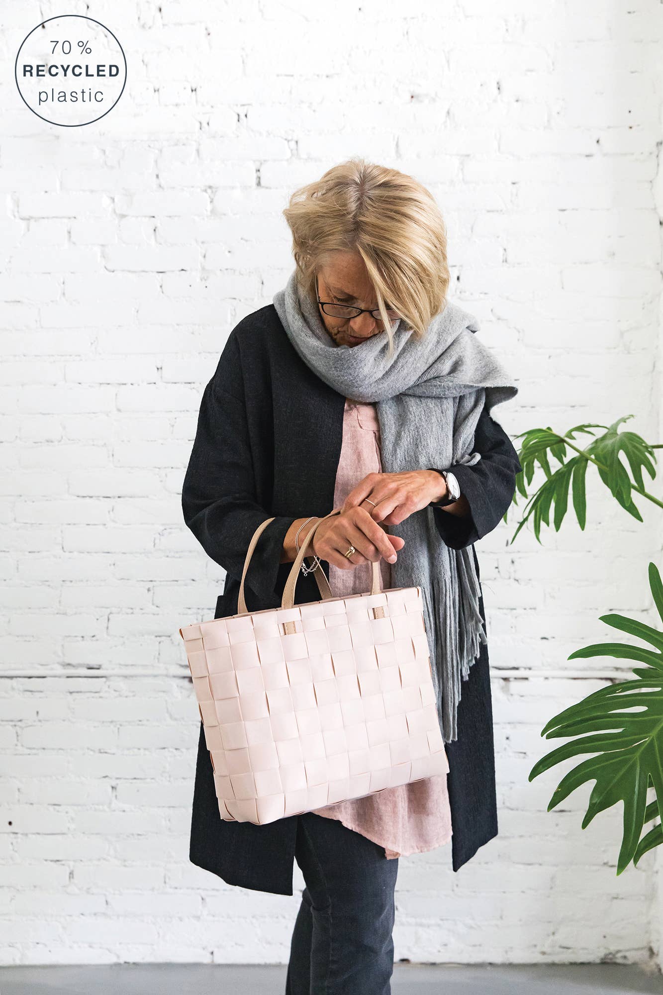 Petite Recycled Handwoven Small Tote w/Inside Pocket-Nude