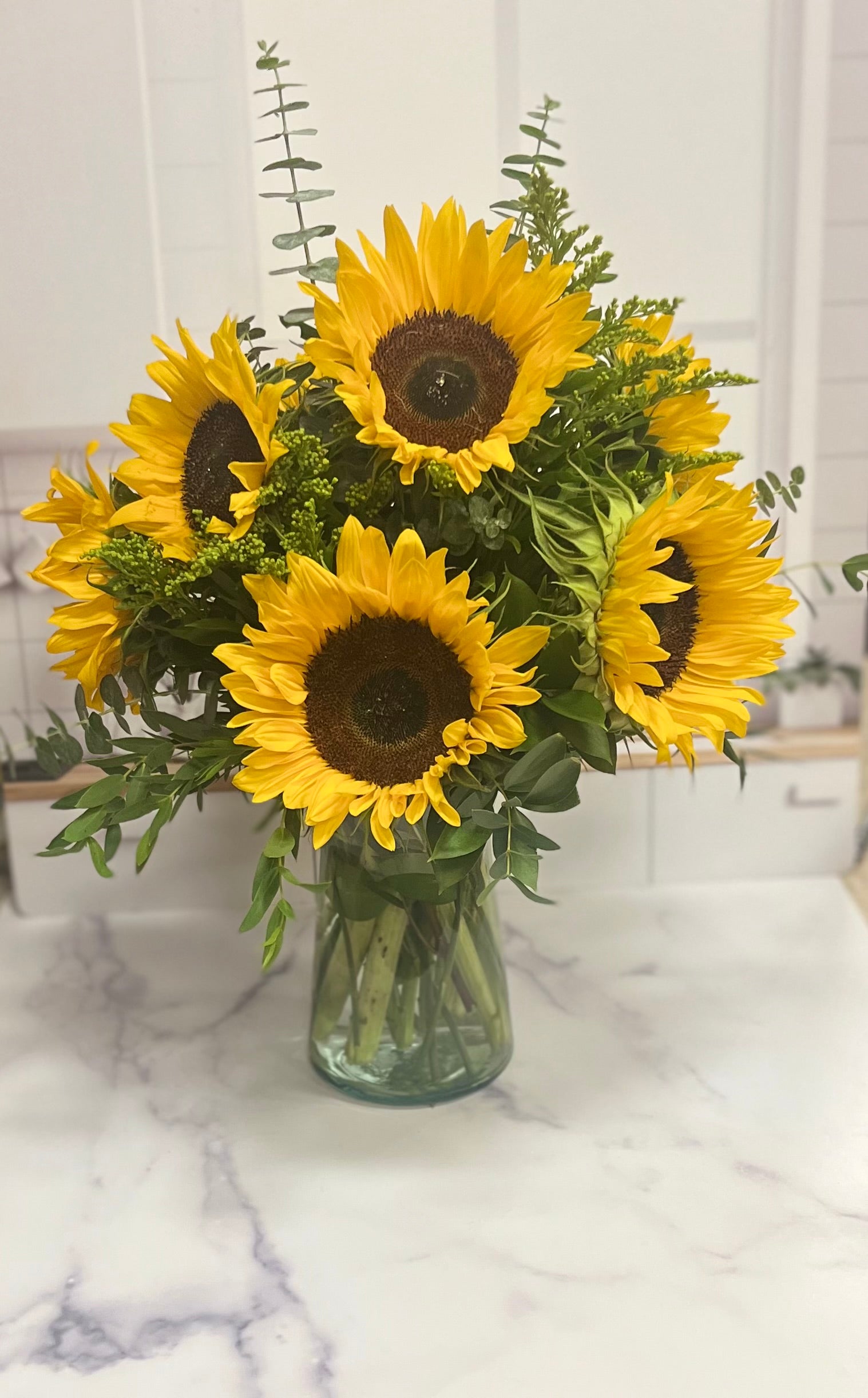 Brighten any space with the radiant charm of Hello Sunshine-a bold, joyful arrangement bursting with summer energy.