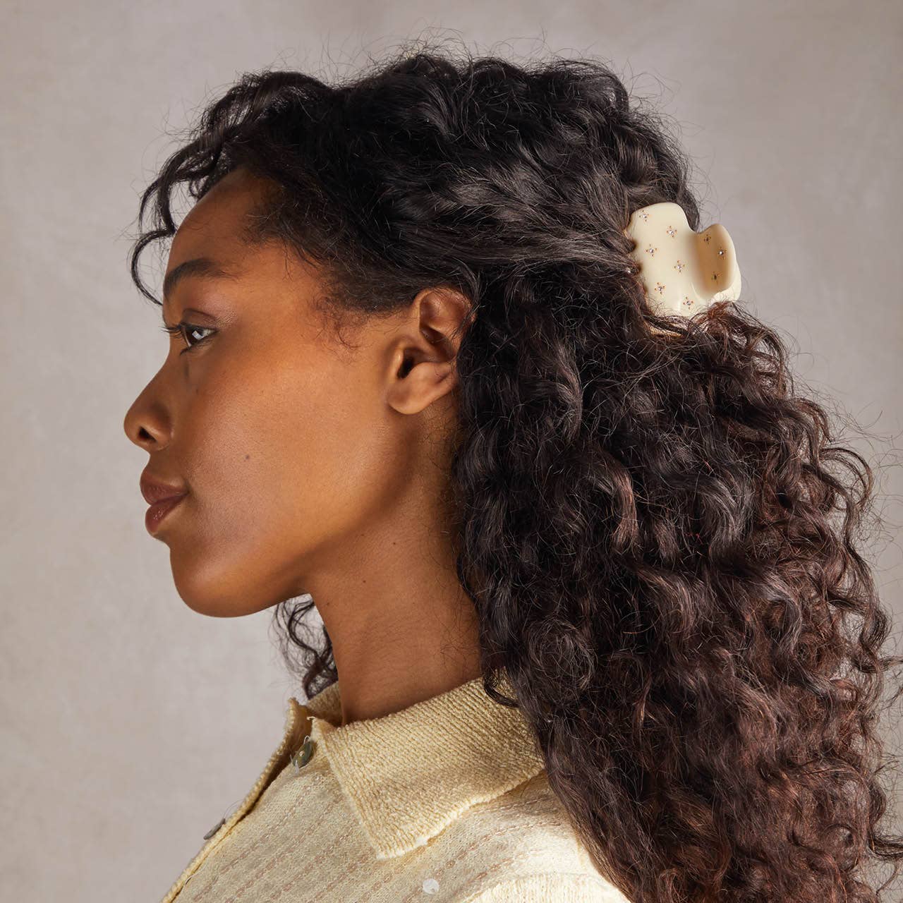 Recycled Plastic Rhinestone Medium Puffy Claw Clip 1pc-Ivory