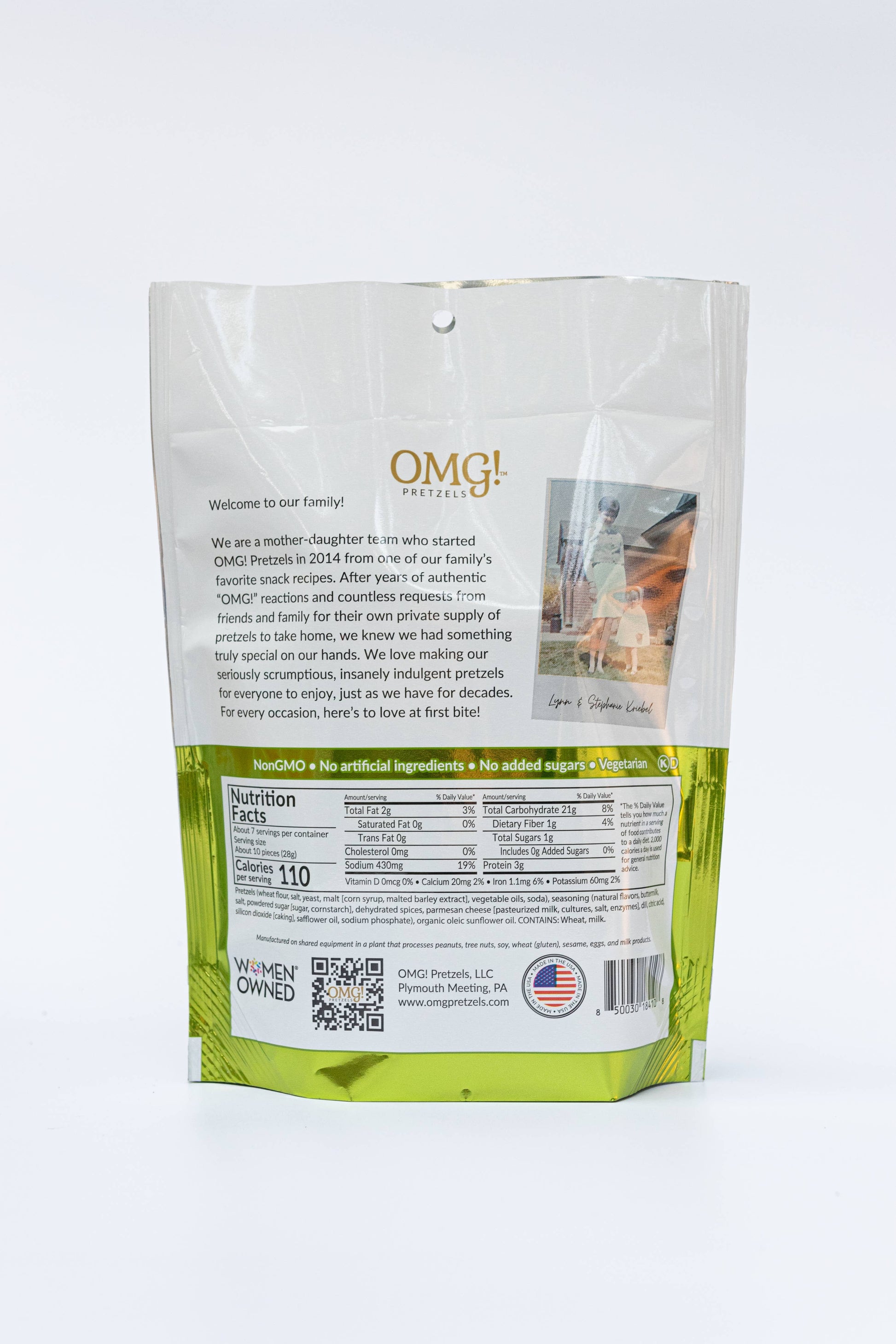 The flagship OMG! Pretzels flavor, our Garlic Pretzels started it all! Their delectable taste and the perfect blend of savory garlic and fresh herbs will have you saying, “OMG!” with every single bite. These crunchy, gourmet seasoned pretzel wonders make the perfect stand-alone snack, and are an elegant and delicious addition to cheese platters, soups, and salads.