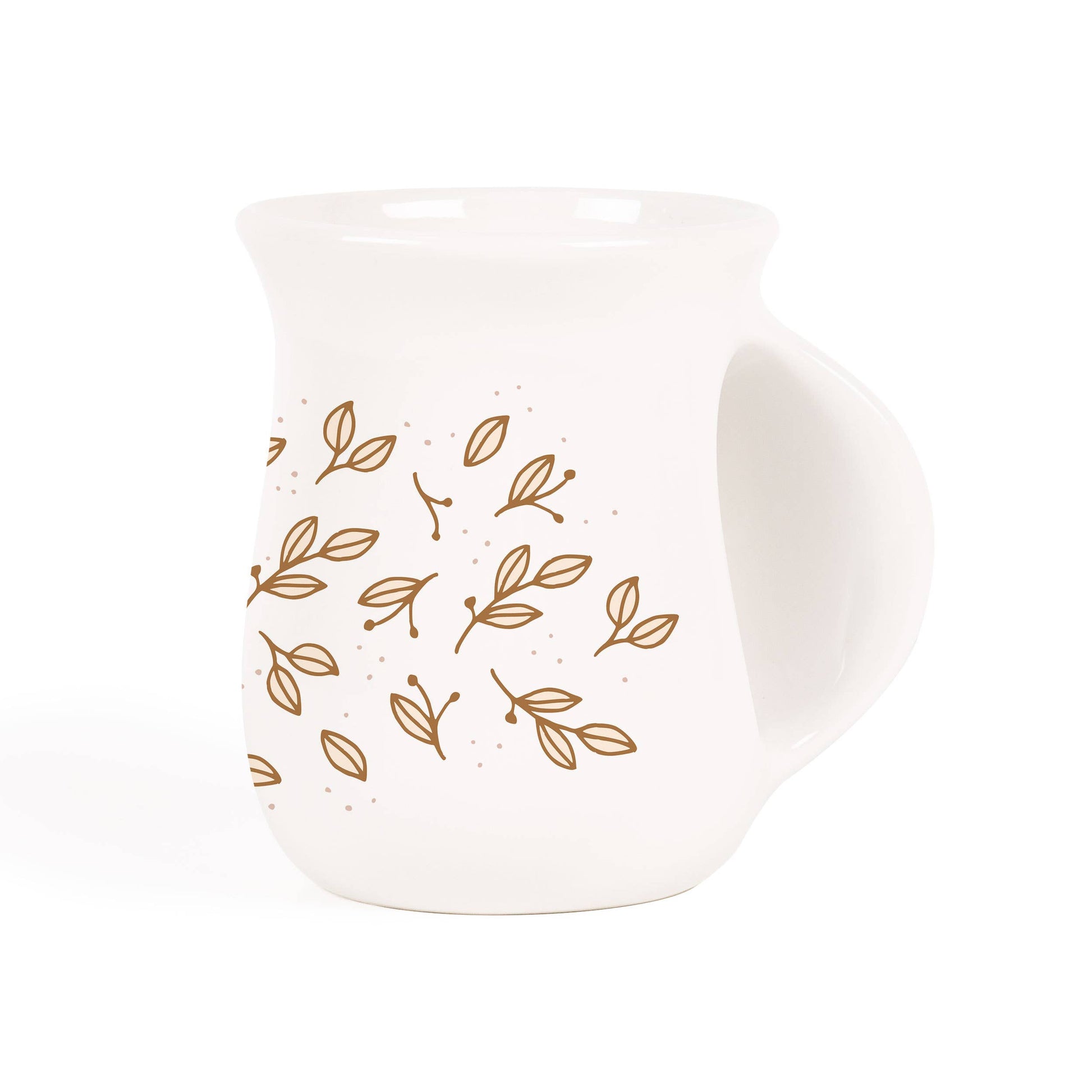 Warm your heart and your hands with this uniquely designed, inspirational mug. Mug features a deep contoured pocket handle - molded so your hands can comfortable surround the mug for warmth. Designed for right-handed use.