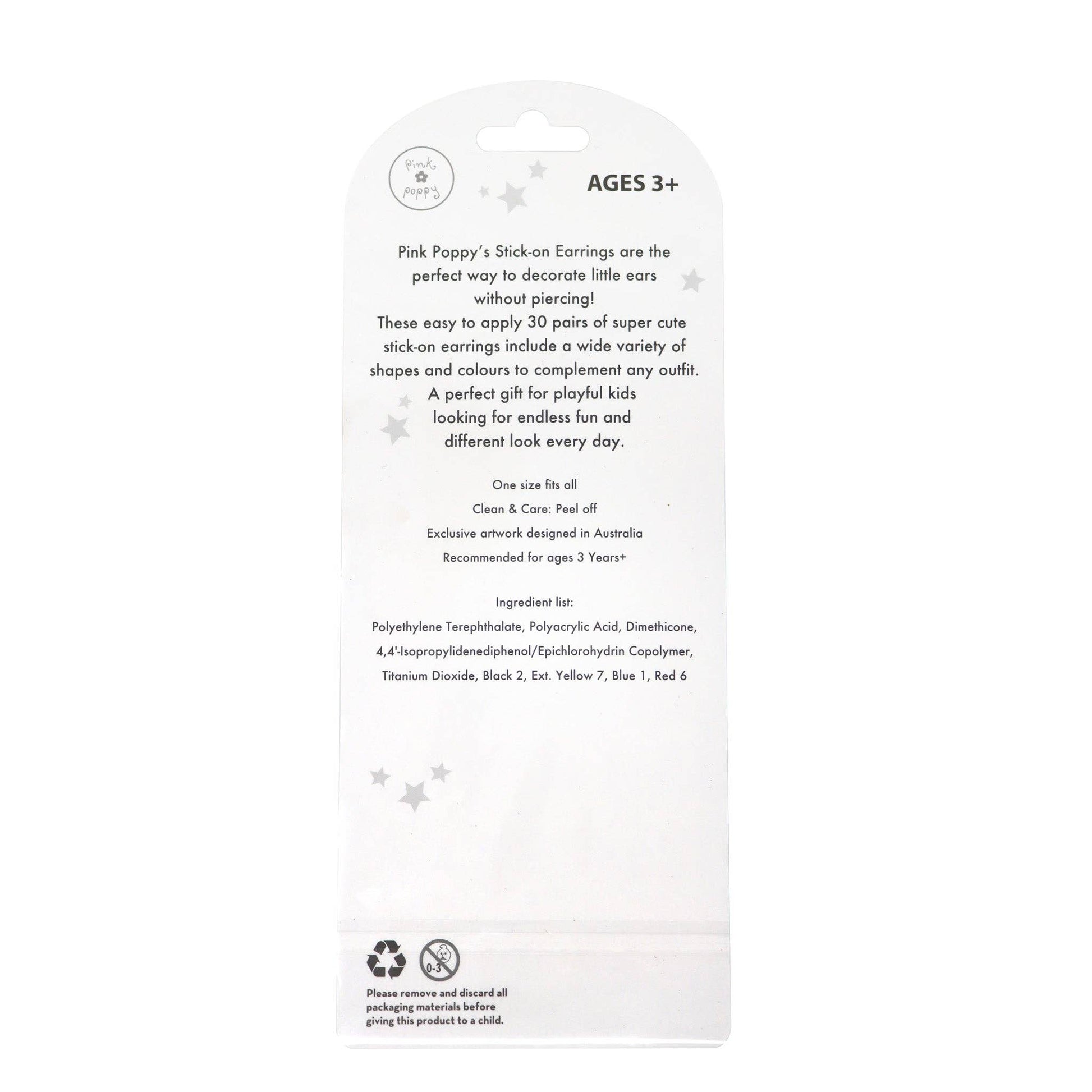 Pink Poppy’s Fairy Butterfly Friends Stick-on Earrings are the perfect way to decorate little ears without piercing! These easy to apply 30 pairs of super cute stick-on earrings include a wide variety of shapes and colours to complement any outfit. A perfect gift for playful kids looking for endless fun and different look every day.