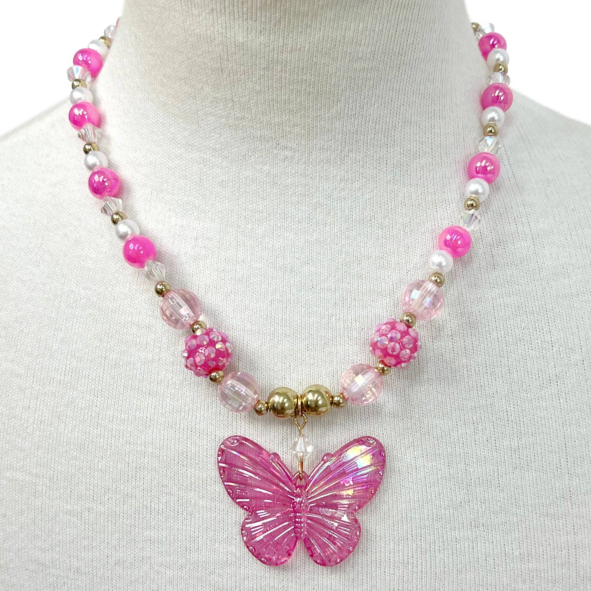 Experience the enchanting charm with our Butterfly Necklace, designed by Pink Poppy! Designed with pink iridescent beads, pearls, and glimmering gold beads on a quality stretch elastic. At its centre, it holds a pink butterfly pendant, embellished with dazzling rhinestone beads, this necklace amplifies elegance and grace, making it the perfect adornment for any occasion.