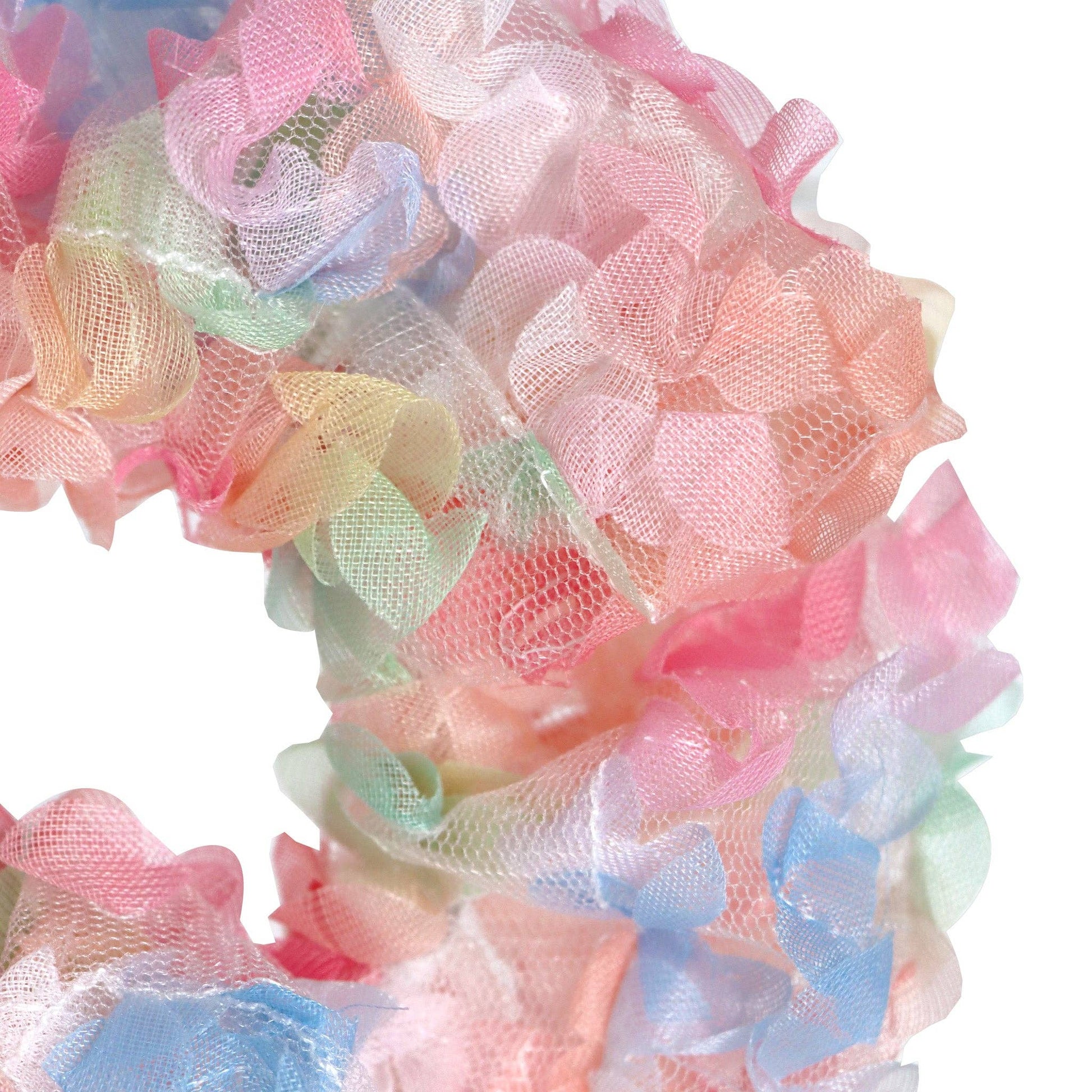 Add a little something special to your hair with Pink Poppy's Rainbow Tulle Large Hair Scrunchie. This large confetti hair scrunchie is a stretch fit with soft pastel rainbow tulle.