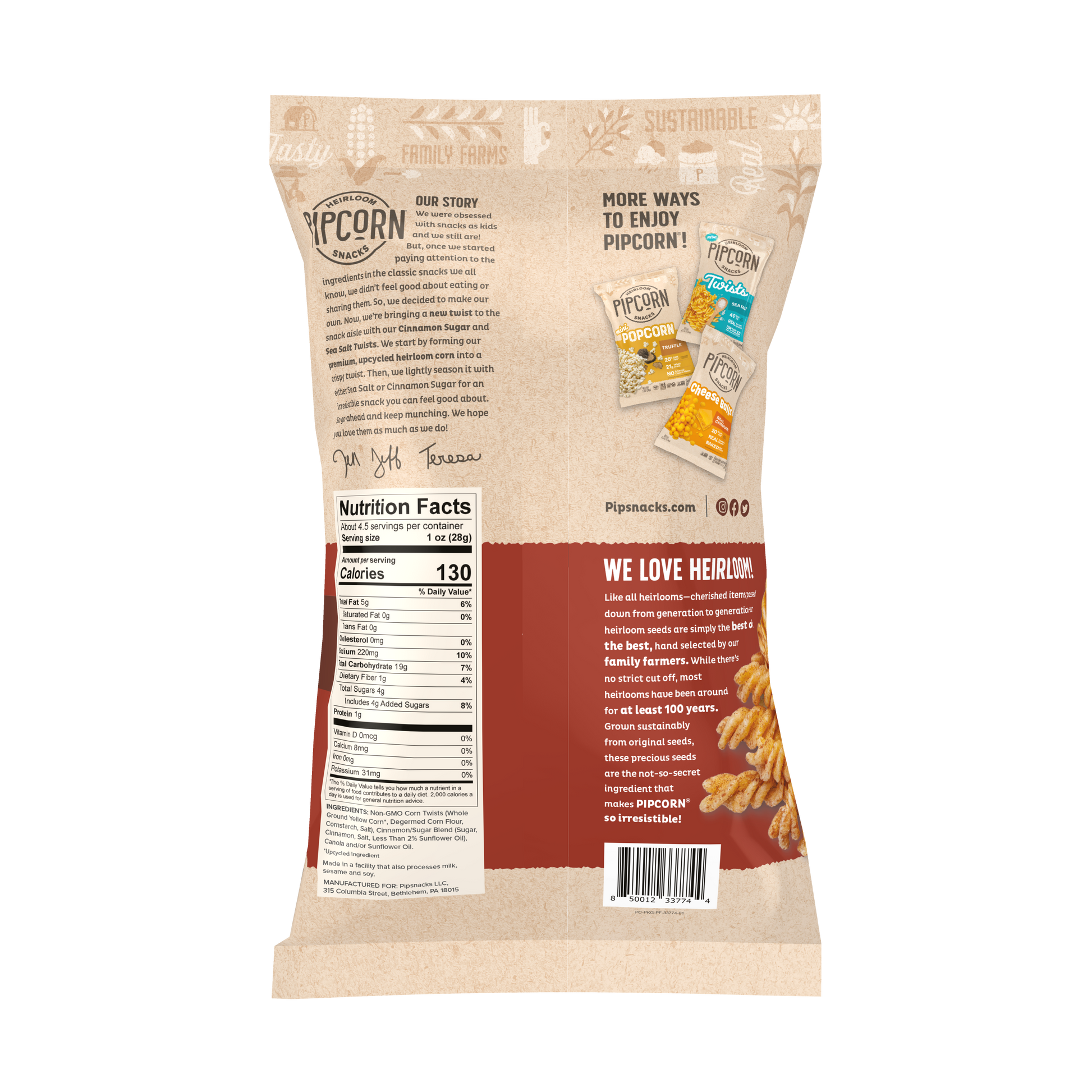 We’re bringing a new twist to the snack game! The irresistible Pipcorn crunch meets the classic flavor, Cinnamon Sugar, for a uniquely satisfying, omg-I-finished-the-bag snacking experience. Our all-new Twists are made with sustainability in mind by using upcycled Heirloom corn flour to create a flavor-packed shape that’s light, airy, and oh-so-crispy! You might even forget that Twists are better for you, too!