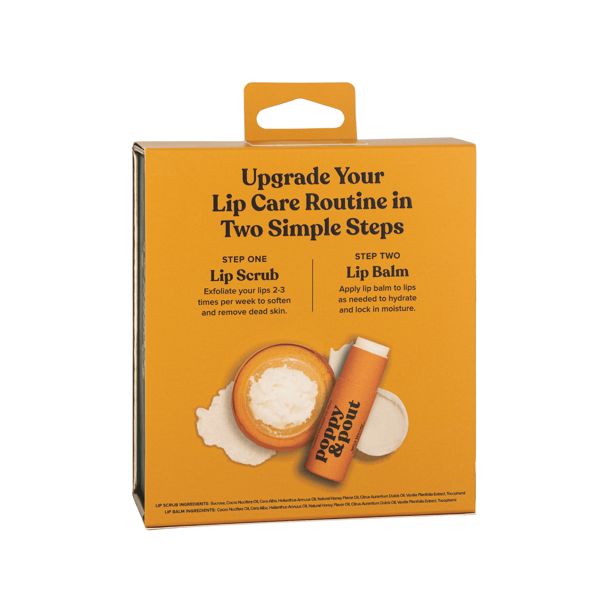 Step up your lip care routine with our Lip Care Duo! This gift set includes one matching lip balm and lip scrub in our signature (newly updated!) green and gold, recyclable gift box.