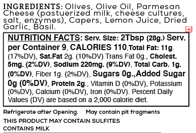 A combination of creamy parmesan cheese and salty chopped California olives. This tapenade is a pantry staple and a must-have for any olive lover.