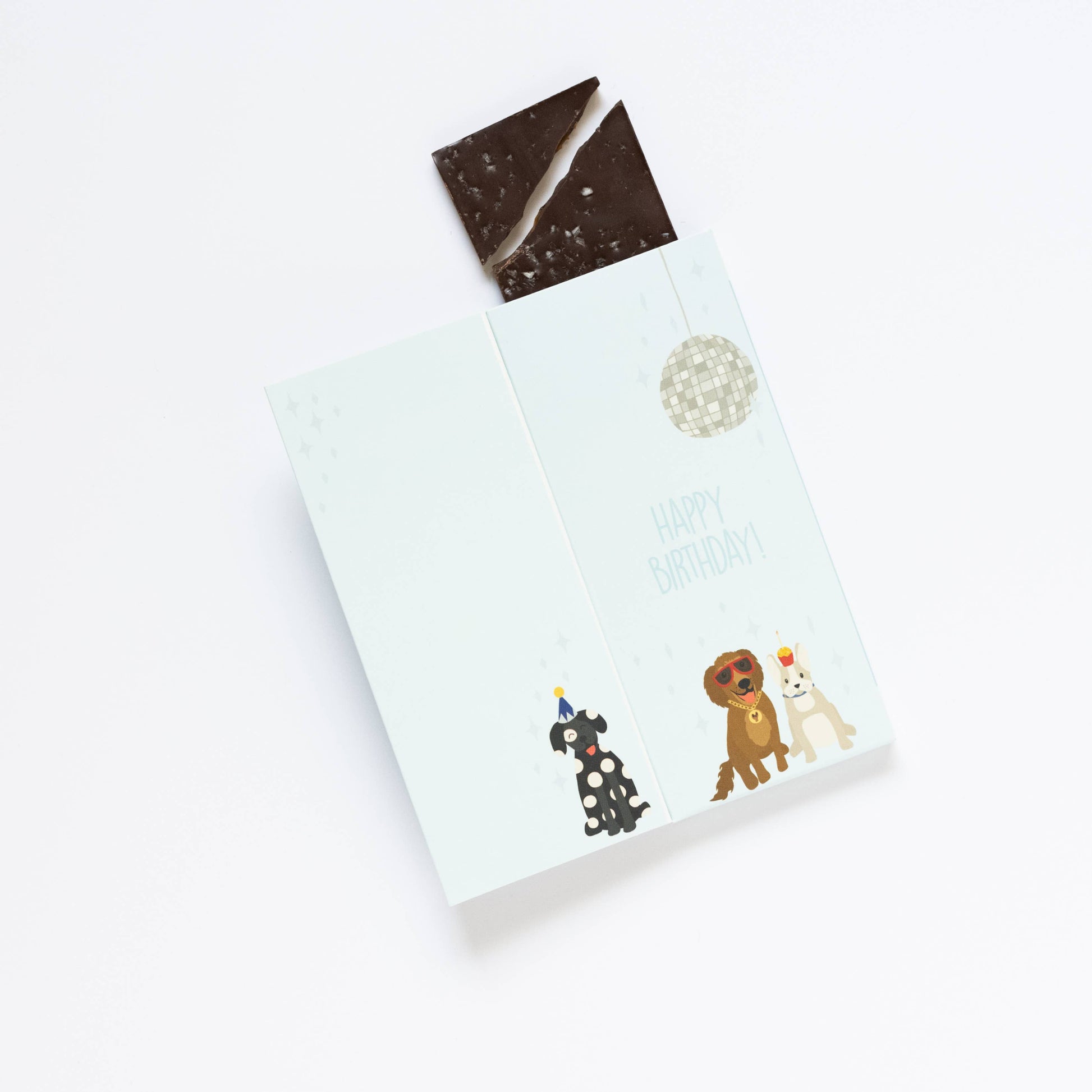 A Happy Birthday Card with Chocolate Inside - a first-of-its-kind gift and card all in one, raising the (chocolate) bar on greeting cards! Perfect for dog lovers!
