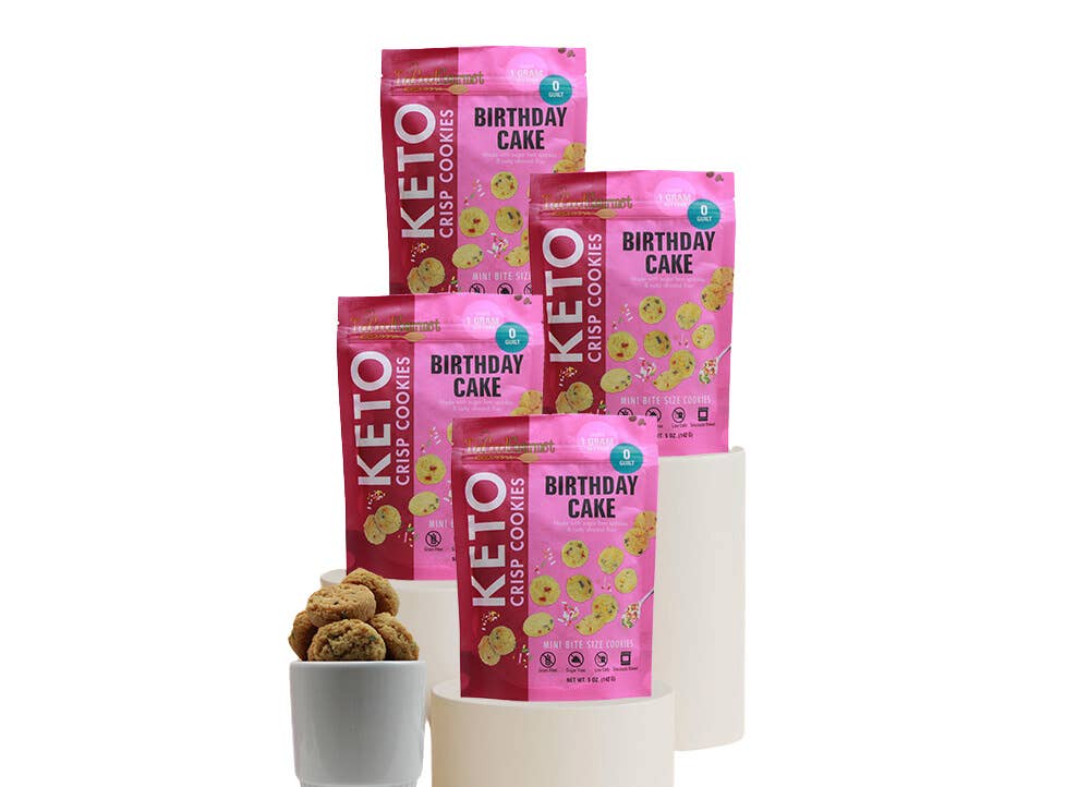 Introducing our Keto Mini Cookies, now in convenient 5oz bags! Indulge guilt-free in our Chocolate Chip, Birthday Cake, Lemon, and Peanut Butter flavors. Packed with flavor and low in carbs, they're perfect for satisfying cravings while staying keto-friendly.