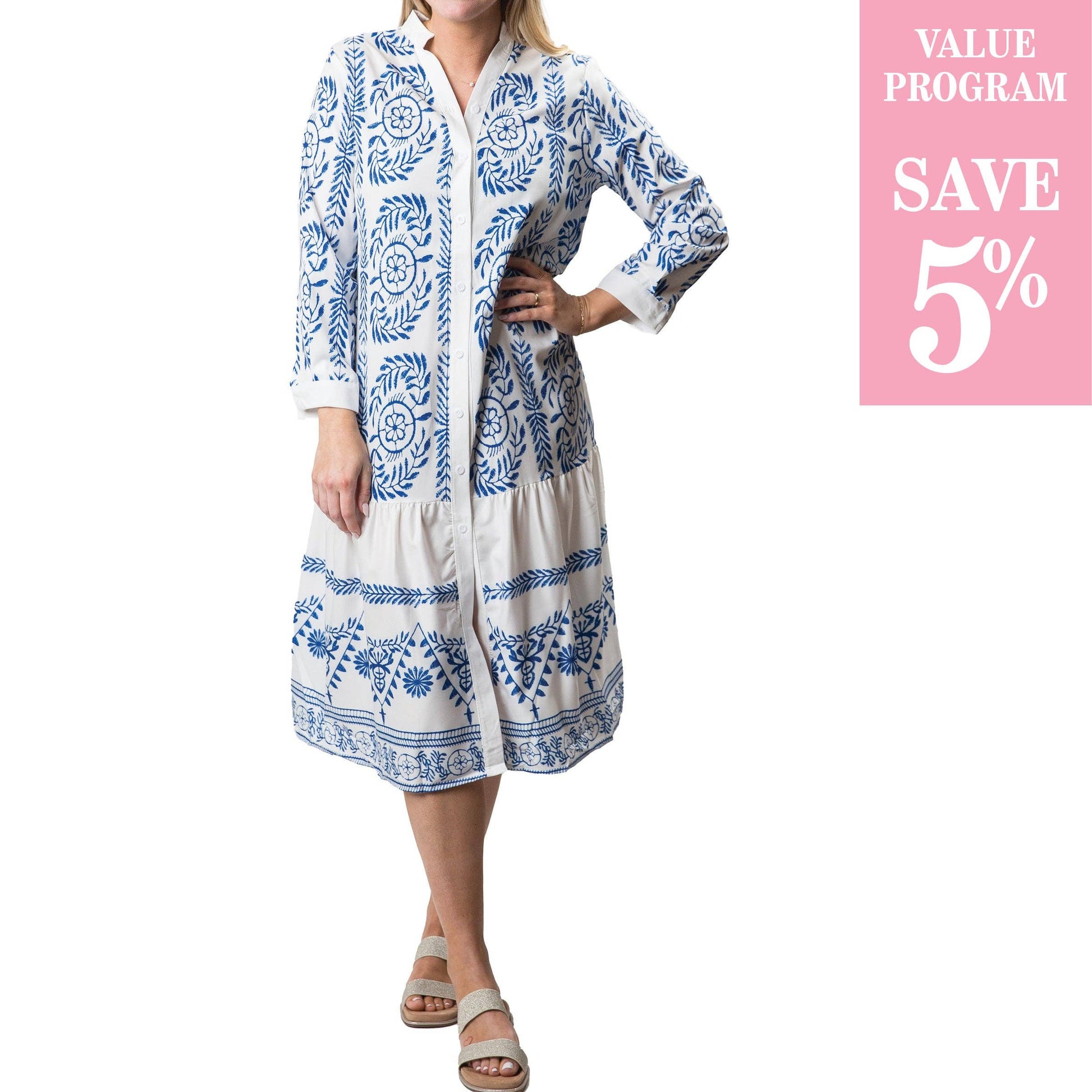 Introducing the Rowan Dress! This bohemian shirtdress features a playful drop hem and eye-catching pattern, adding a touch of fun to your wardrobe. Perfect for the upcoming spring season, pair it with your favorite accessories for a unique and lighthearted look!