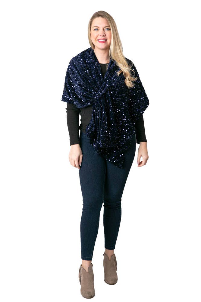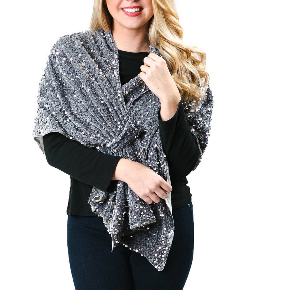 Crafted with a sleek design and sparkling sequin detail, the Krystal Sequins Keyhole Wrap is the perfect way to accessorize this holiday season. Its one-size-fits-all structure makes it an ideal gift for friends and family. This wrap is sure to add an elegant touch to any look and can be used year-round to make any occasion shine.