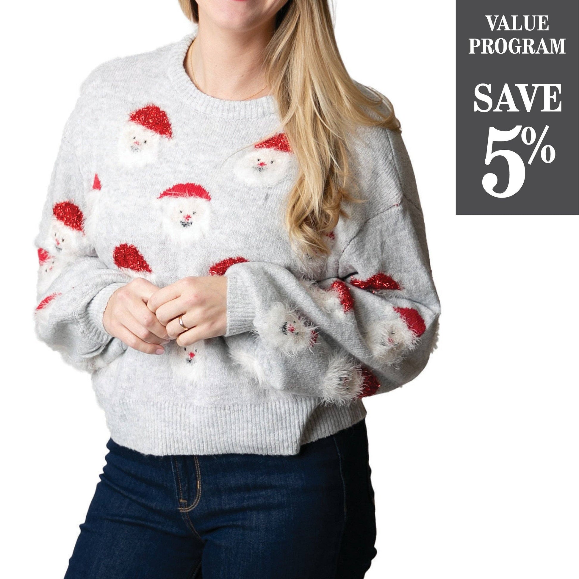 Top It Off - Light Gray Nickie Santa Sweater Program - Fall 2024