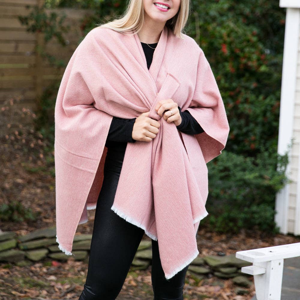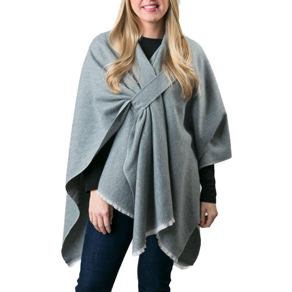 Elegant and effortless, this soft and chic oversize wrap is so versatile. The perfect addition to any wardrobe, Great for outdoor events- the longer length makes it extra cozy and warm. One size, it makes an easy gift. Wear with our hats and gloves for extra warmth. Style with jeans and boots.