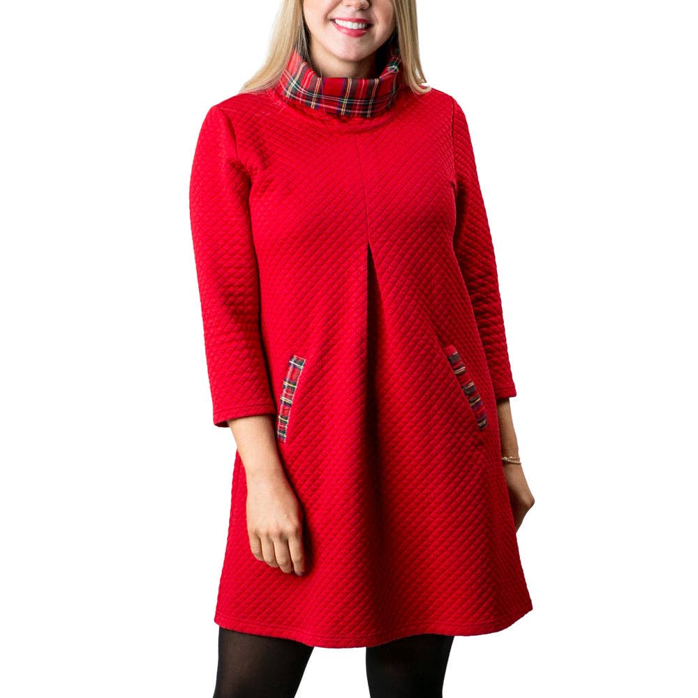 Top It Off - Quilted Ruby Dress with Plaid Accents - Fall 2024: Red / Small