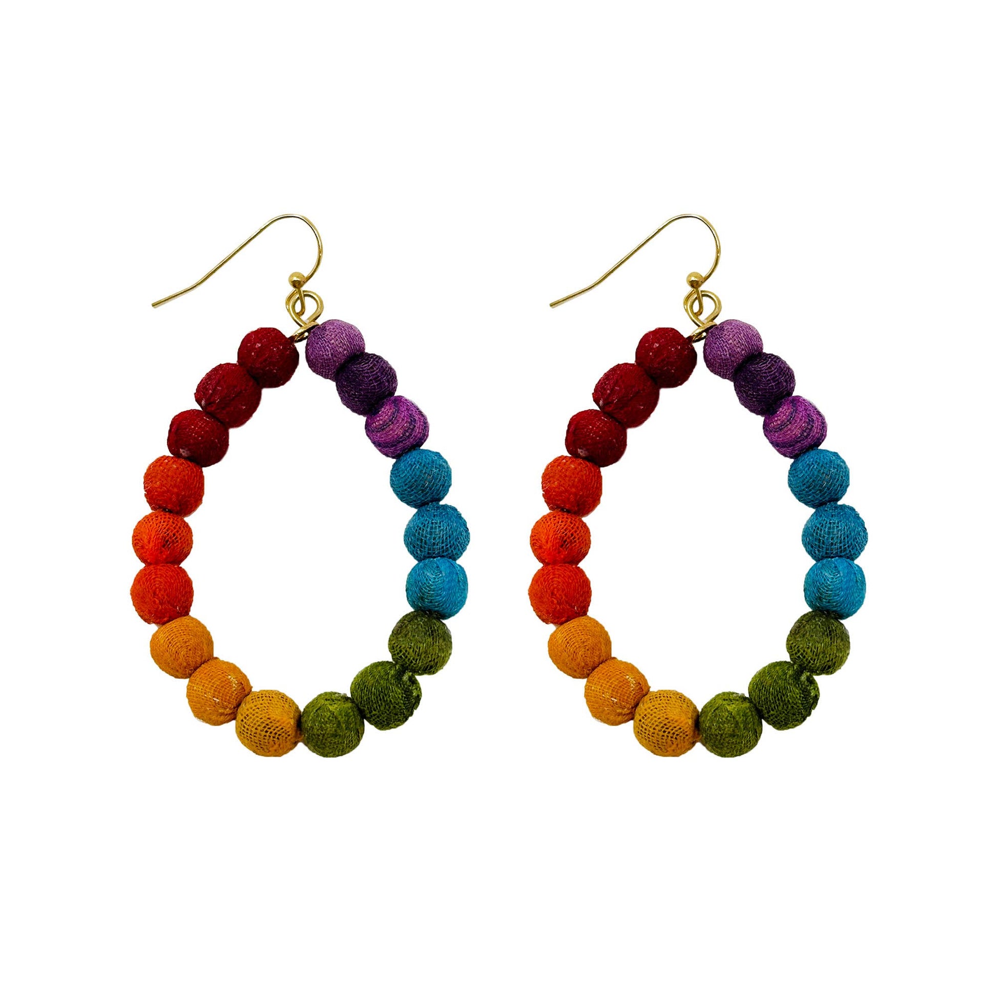 These Kantha Prism Teardrop Earrings are a vivid take on a classic, everyday style that lets it’s prismatic hues be the star of the show. It's thoughtfully crafted from reclaimed Kantha & Sari textiles that have been hand-sorted, so each piece is slightly different.